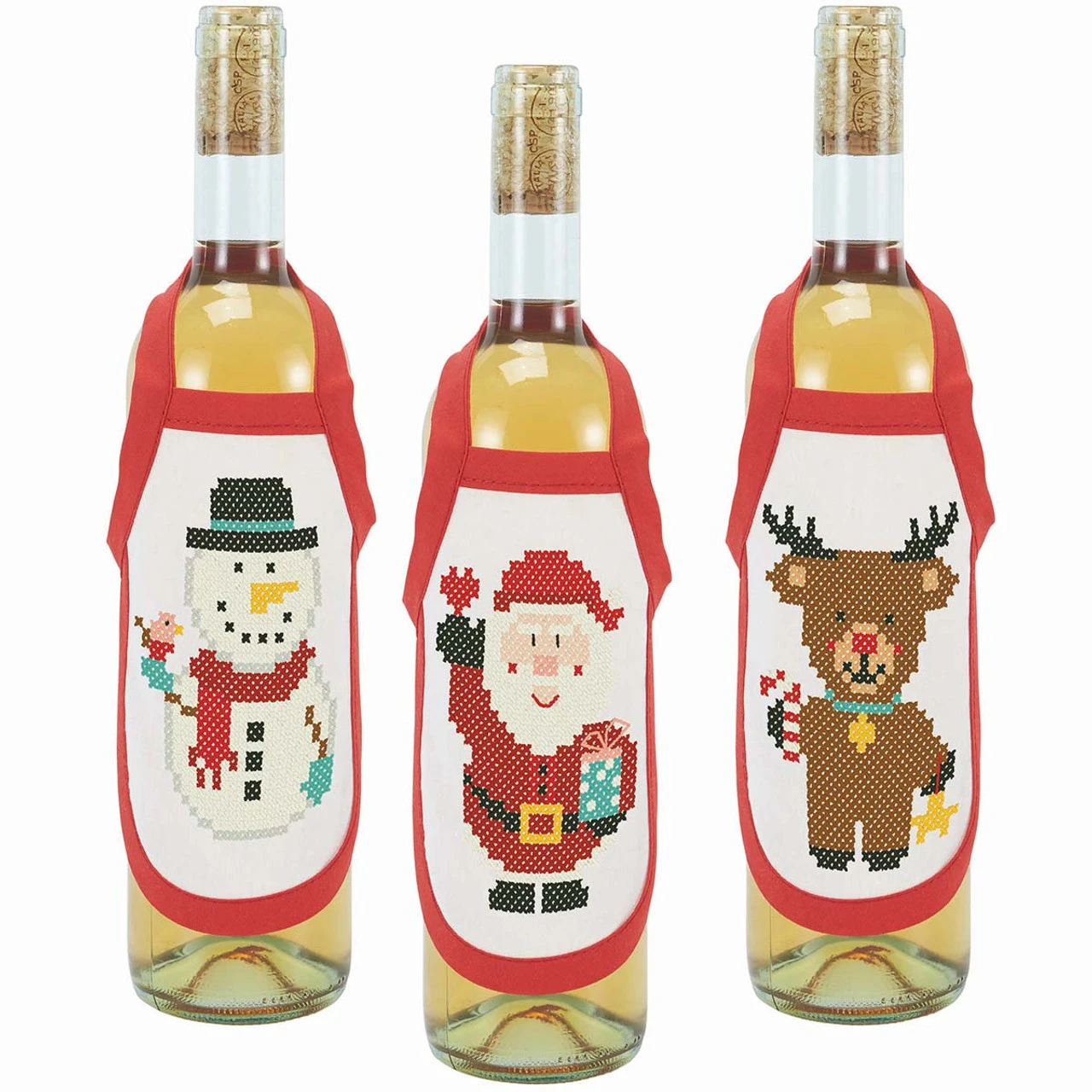 Herrschners Christmas Friends Bottle Aprons Stamped Cross-Stitch