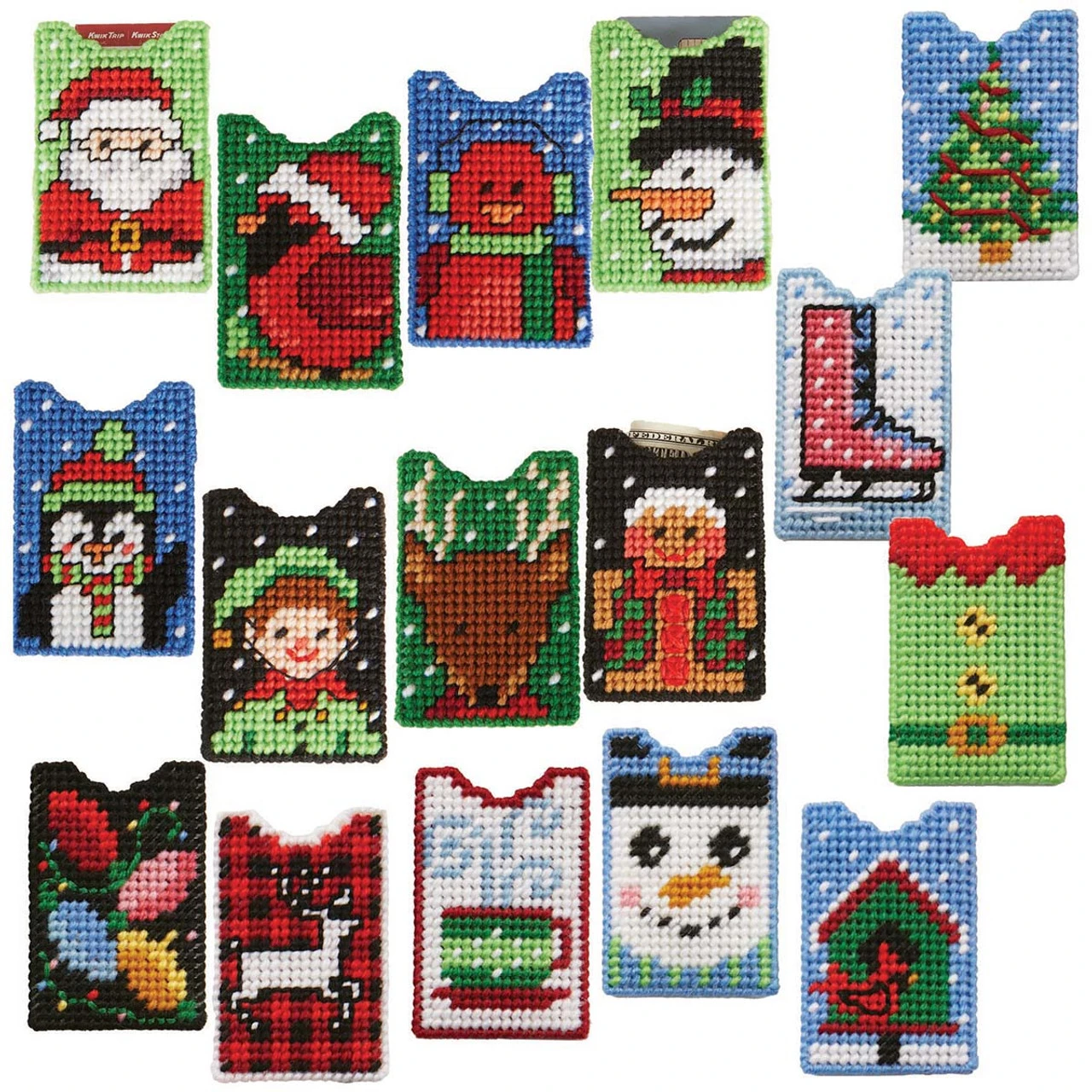 Dress up a gift card with a hand-stitched envelope featuring iconic Christmas motifs like Christmas lights, snowmen, a Christmas tree, Santa, an elf, a reindeer, and more. This complete kit includes 7-mesh plastic canvas, acrylic yarn, needle, and instructions to create all 8 gift card holders shown. These quick-to-stitch gift card holders are a thoughtful addition to a gift card, making your present two gifts in one! Imported.