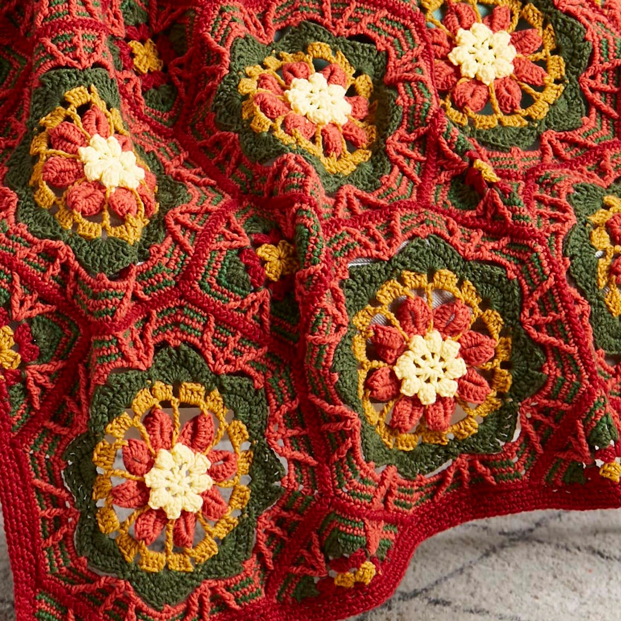 Spend Christmas Eve curled up under a stained-glass-inspired mosaic in traditional holiday hues. Kit includes Herrschners Worsted 8 Yarn. 50 × 50″ (127 x 127cm). Imported.