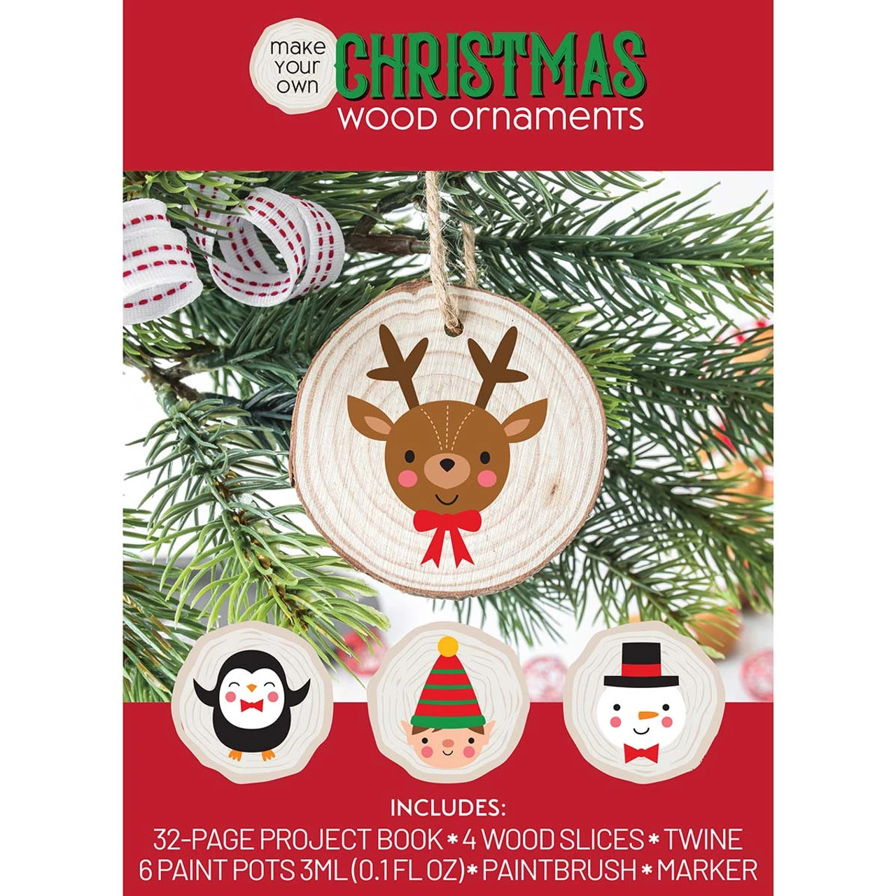 Create your own Christmas décor with these ready-to-paint wooden ornaments. This fun and easy wood ornament kit makes a great family painting activity, or the designs can be painted as quick gifts for family and friends. The set includes 4 wood slice ornaments, twine, 6 paint pots, a paintbrush, a marker, and a 32-page project book with a variety of fun patterns and ideas for painting your ornaments. Or, you can come up with your own design!