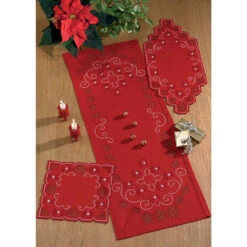 Nob Hill Christmas Bouquet Table Topper Stamped Embroidery Kit